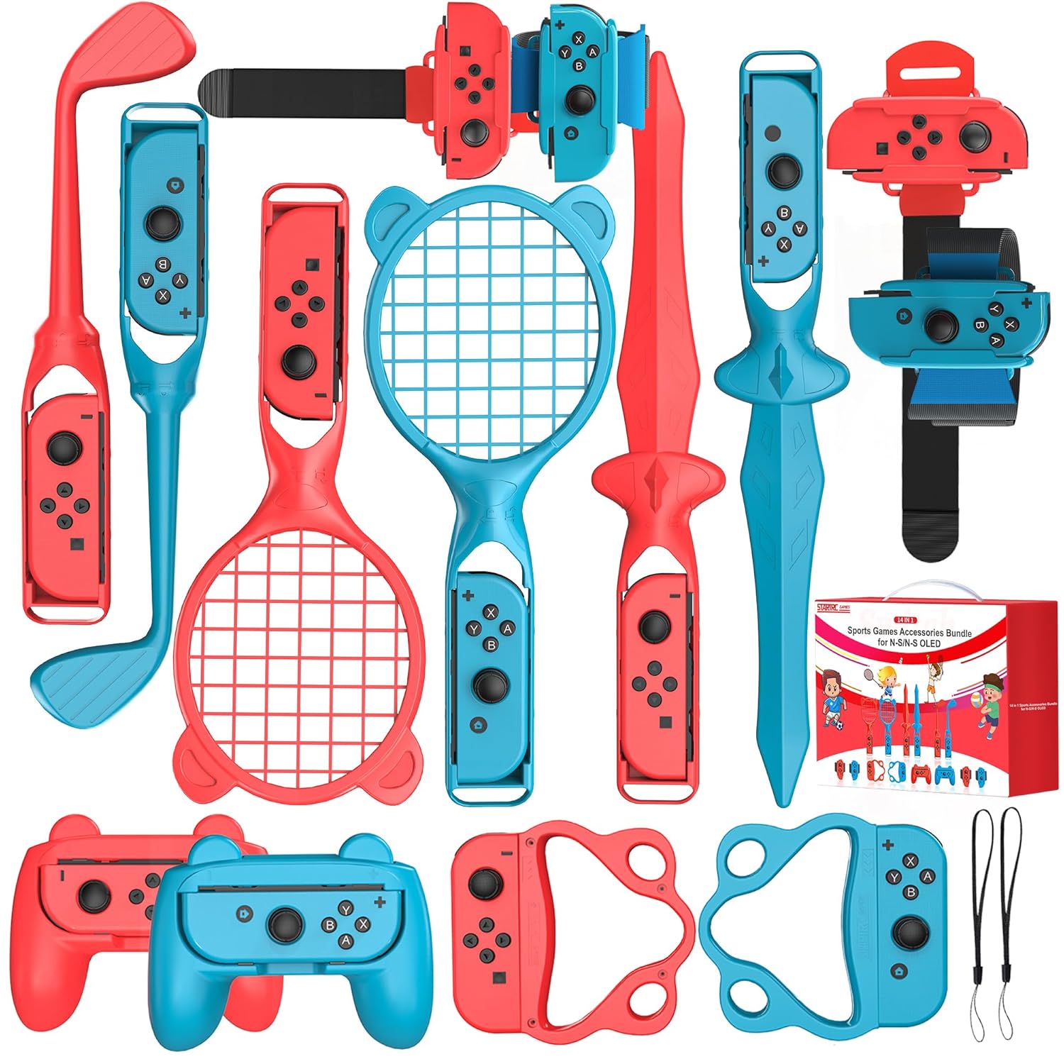 - 14-in-1 Switch Sports Accessories Bundle: The sports accessories bundle specially designed for Nintendo Switch/Switch OLED, comes with separate storage bag, saving you time in searching for sports accessories.