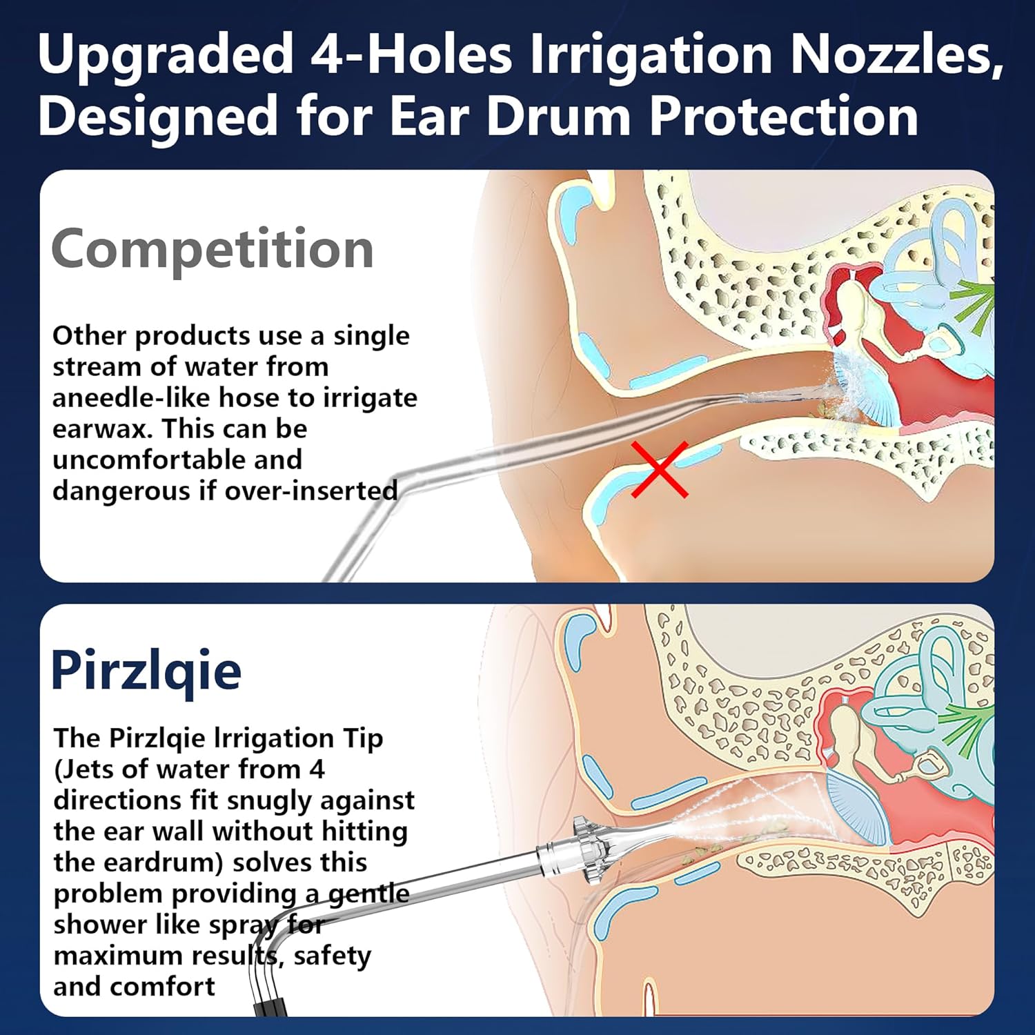 - 4 Modes Safe Design: Our electric ear wax removal offers soft, middle, par, high mode for effective earwax removal, the four-hole tip sprays water in four directions along the ear canal, no hitting the eardrum, for wider, safer ear irrigation coverage.