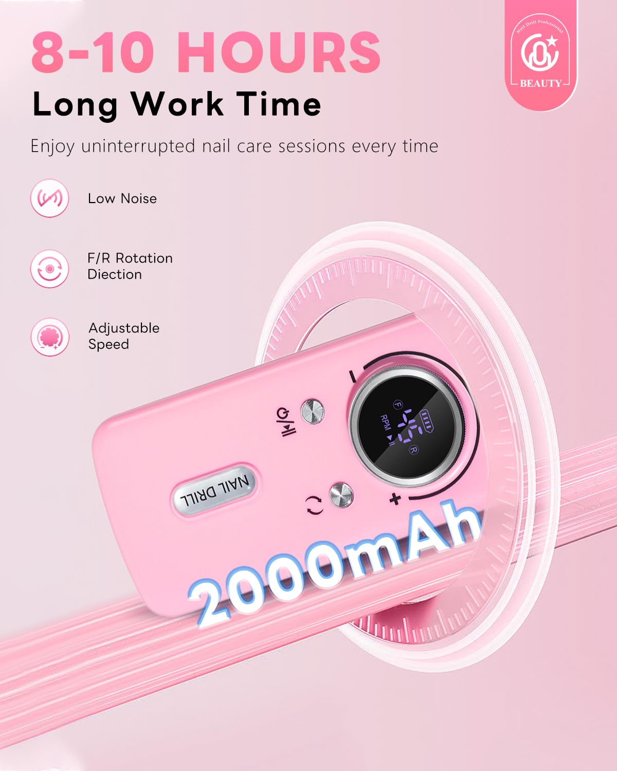 - 8-10 Hours Long Work Time:Enjoy uninterrupted nail care sessions with our rechargeable nail drill, offering an impressive 8-10 hours of continuous operation on a single charge. Ideal for busy salon environments or long at-home nail treatments, ensuring consistent, reliable performance every time.