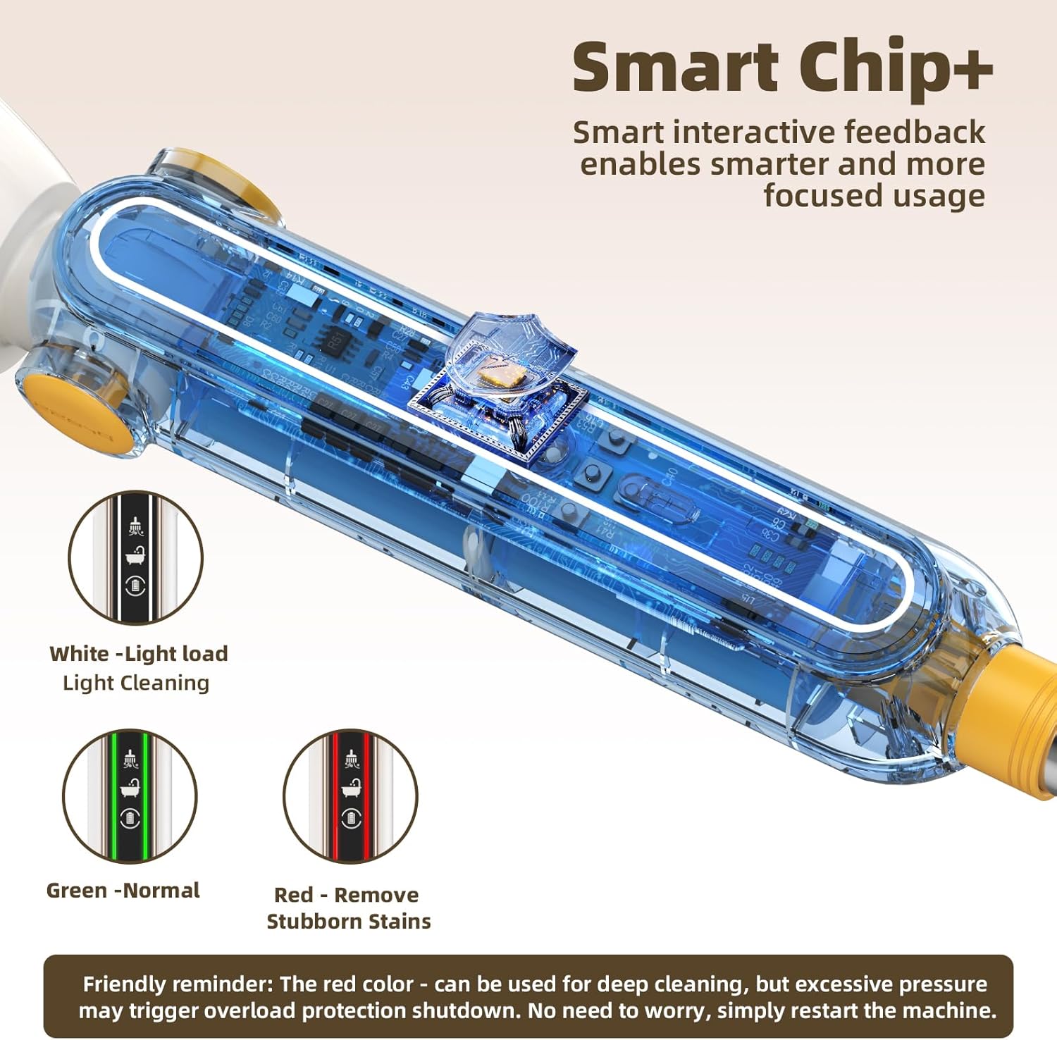- 【Intelligent Interaction & Effective Stain Removal】The electric spin scrubber features an intelligent chipset with three indicator lights for a seamless user experience. The white light signals light cleaning, green for efficient cleaning, and red for stubborn stains. This intuitive feedback saves time and effort, ensuring a stress-free cleaning process.