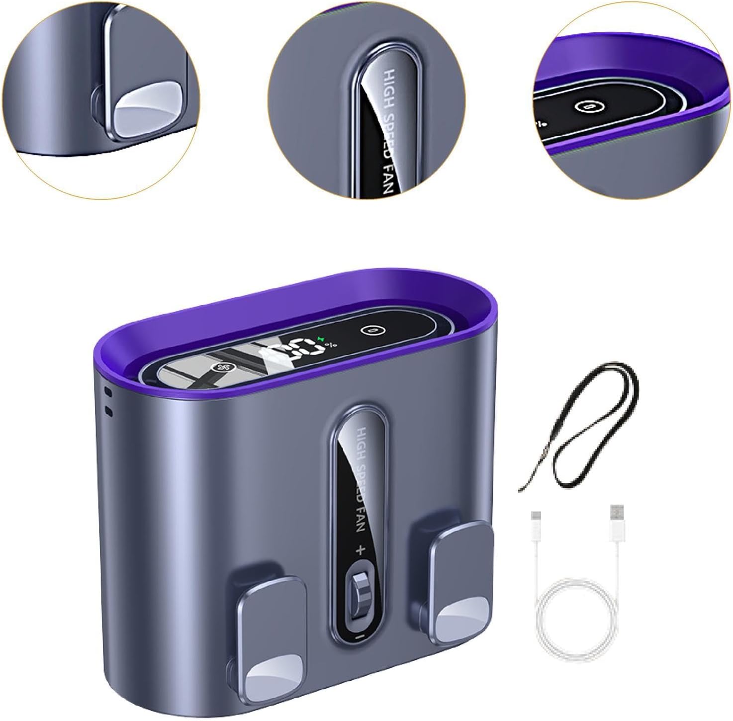 - 【Complete Package】: The product comes with everything you need for immediate use 1 Portable fan, 1 charging cable, and 1 hanging strap.