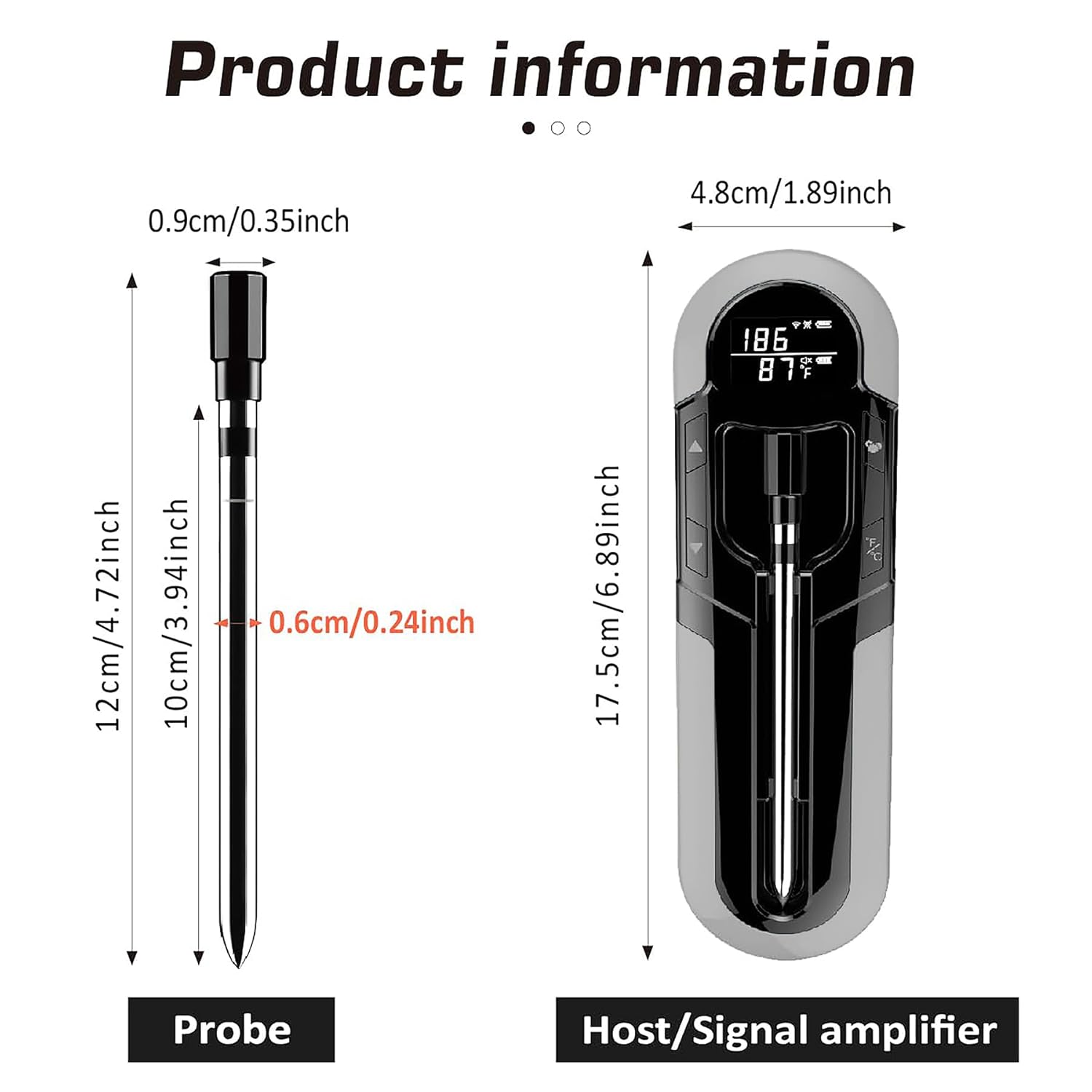 Wireless Meat Thermometer with Probe, Rechargeable, Suitable for Cooking Turkey, Fish and Beef