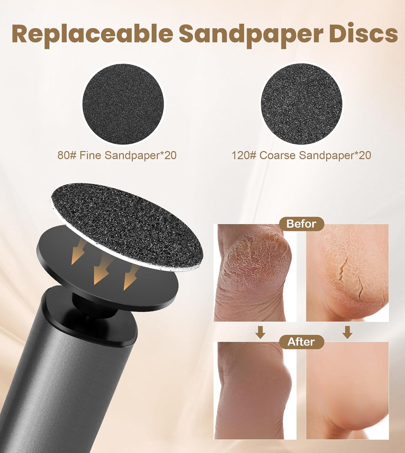 - 2-in-1 Electric Callus Remover Tools for Feet & Nail:This Electric Foot Callus Remover comes with two types of care-Feet & Nail. Professional-grade device quickly removes tough foot calluses and dead skin with gentle rotating action, restoring your feet to a soft, smooth state, while precision edge polishes nails to salon-quality finish.