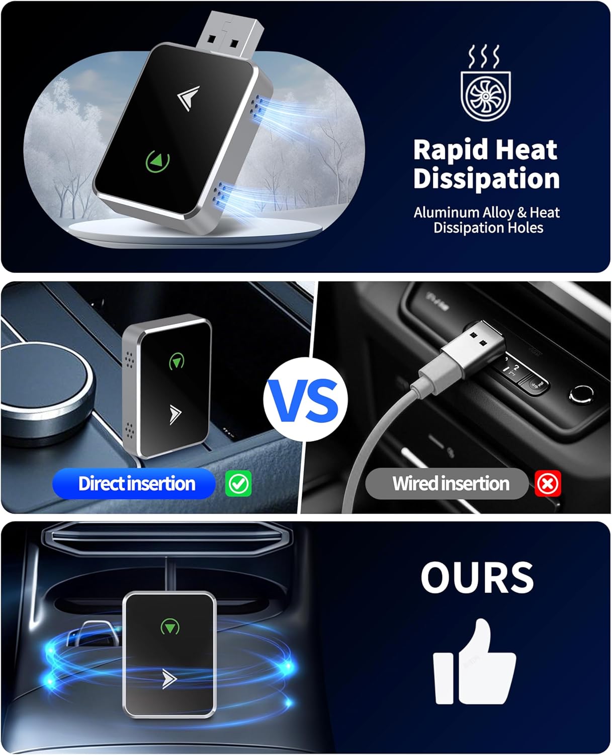 - Intelligent Experience: The Carplay adapter features 2025 upgraded intelligent IC chips and processors, delivering a powerful, rapid, and stable wireless connection while reducing interruptions and delays during use. All while 100% restore the pristine audio quality your car.