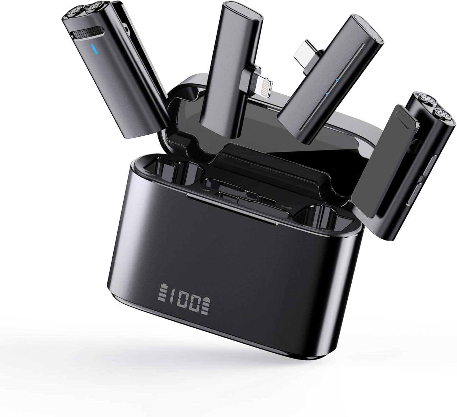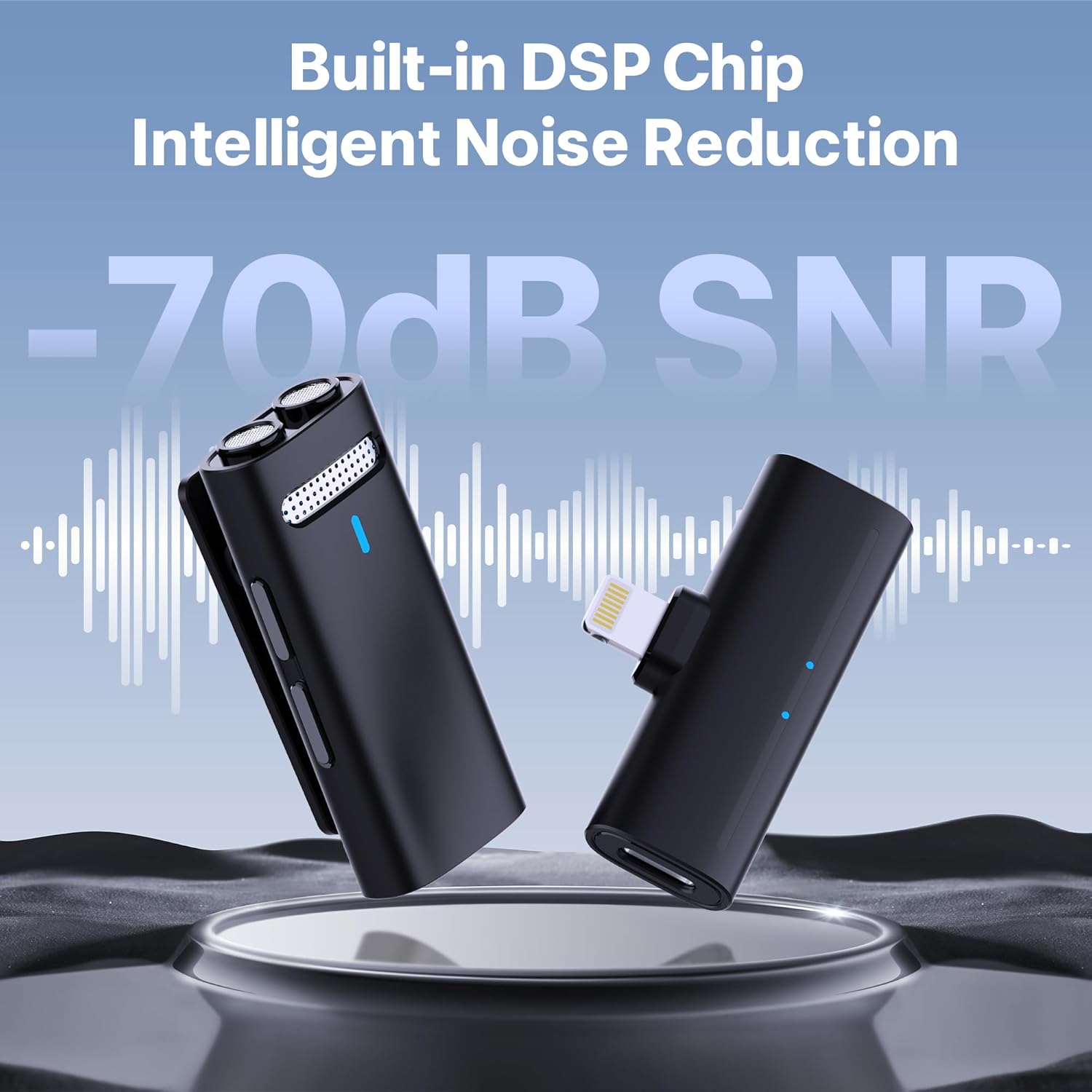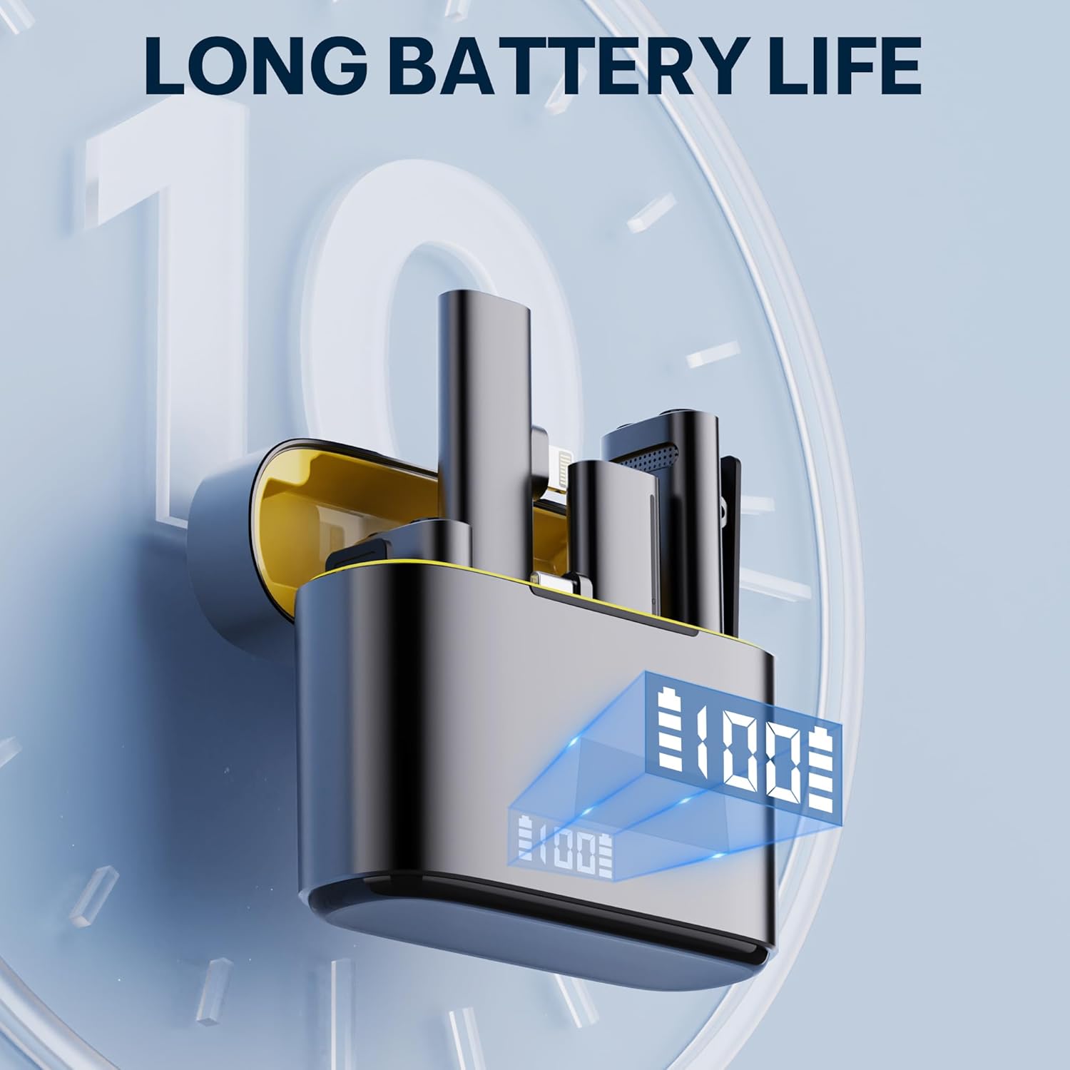 - 20H Working Time: With the battery case, the mini microphone for iPhone can work for up to 30 hours. Pocket appearance design, easy to carry around without clutter. The case also displays real-time remaining power. Thoughtful details are more practical.