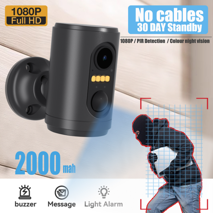 - PIR Motion Detection: When someone enters the monitoring area, the camera starts and starts recording; when someone leaves, the camera enters sleep mode.